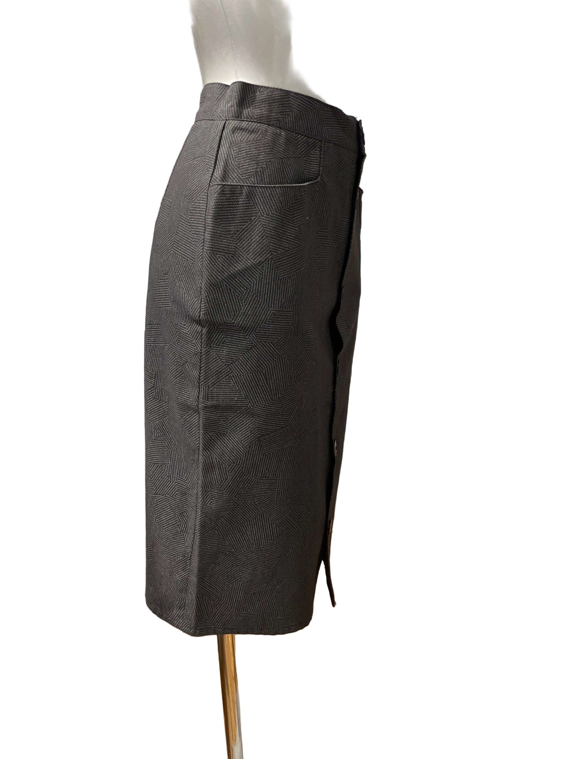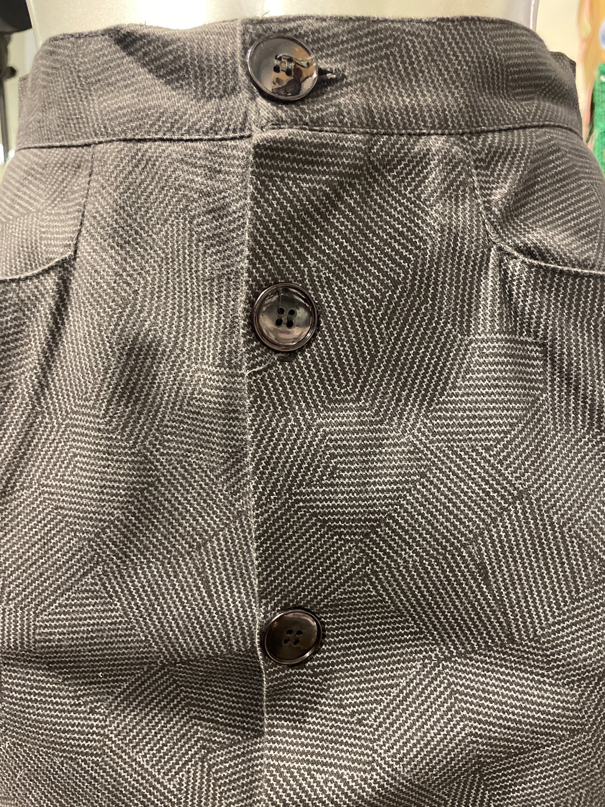 ♻️Vintage pannalskjørt i gråspraglet farge- knapper hele veien i front. Ca str 36- tilstand: Veldig god – ingen hull, flekker eller synlig slitasje