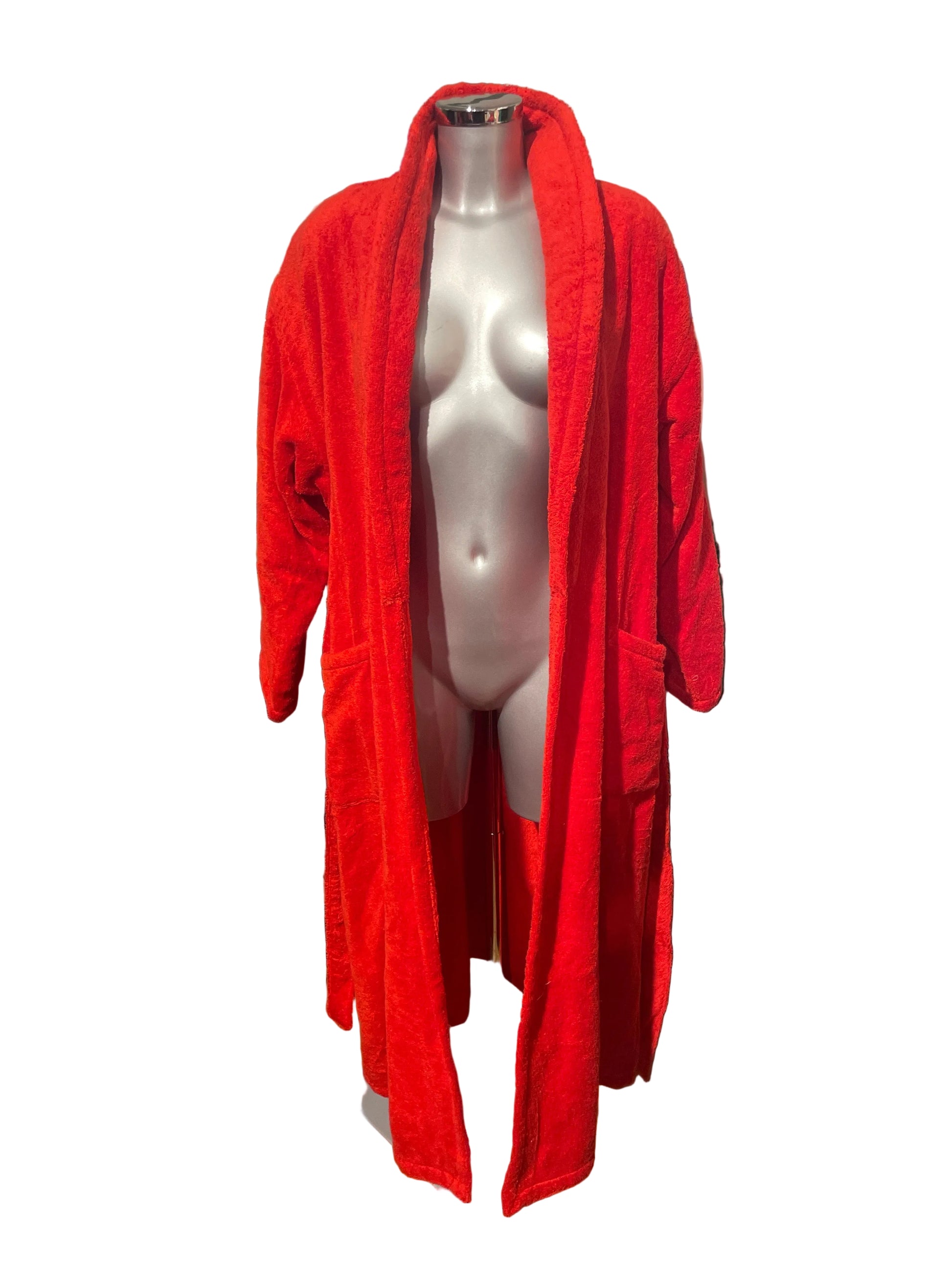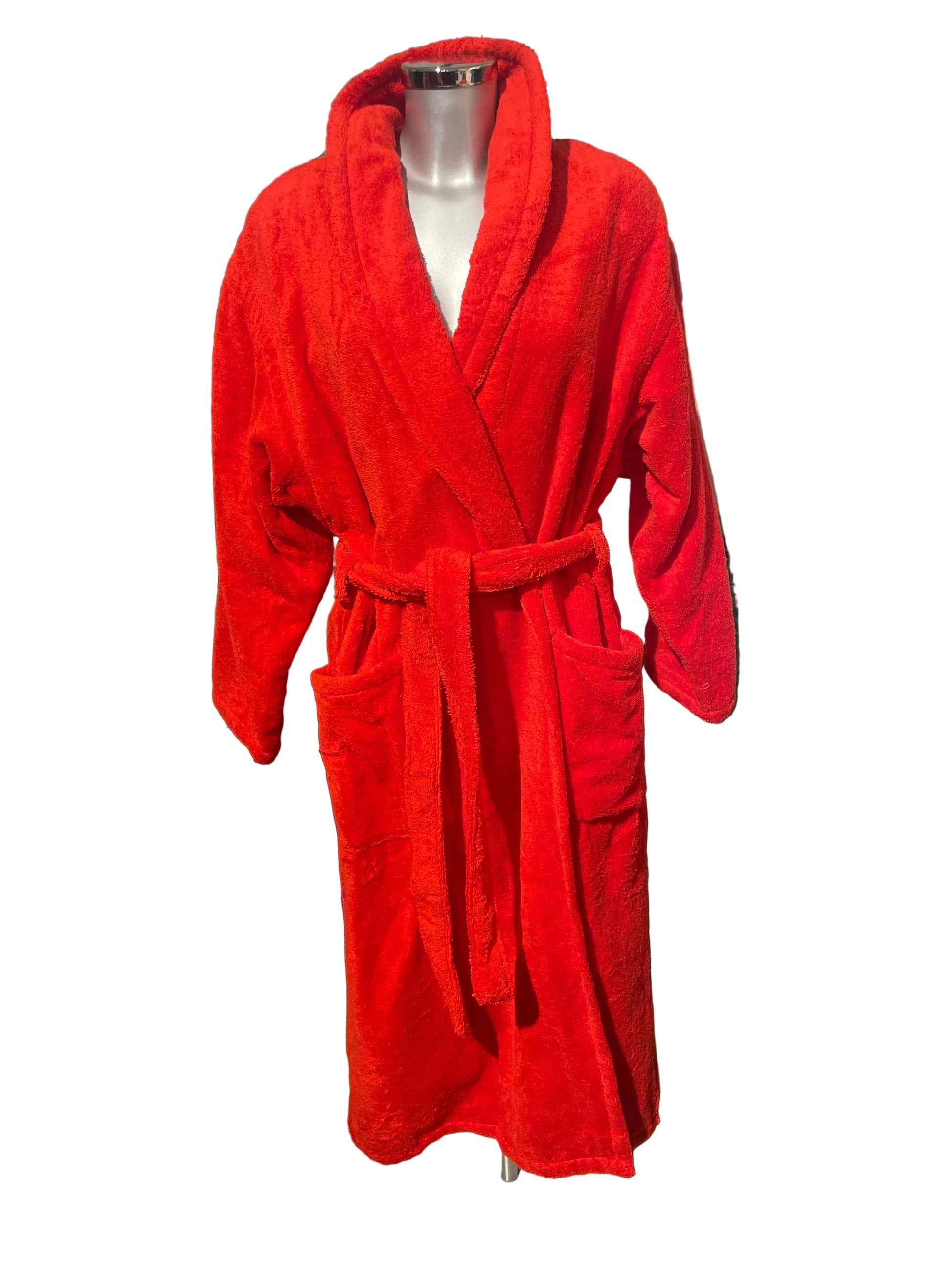 Tykk og god frotte badekåpe i rød fra Cawo!