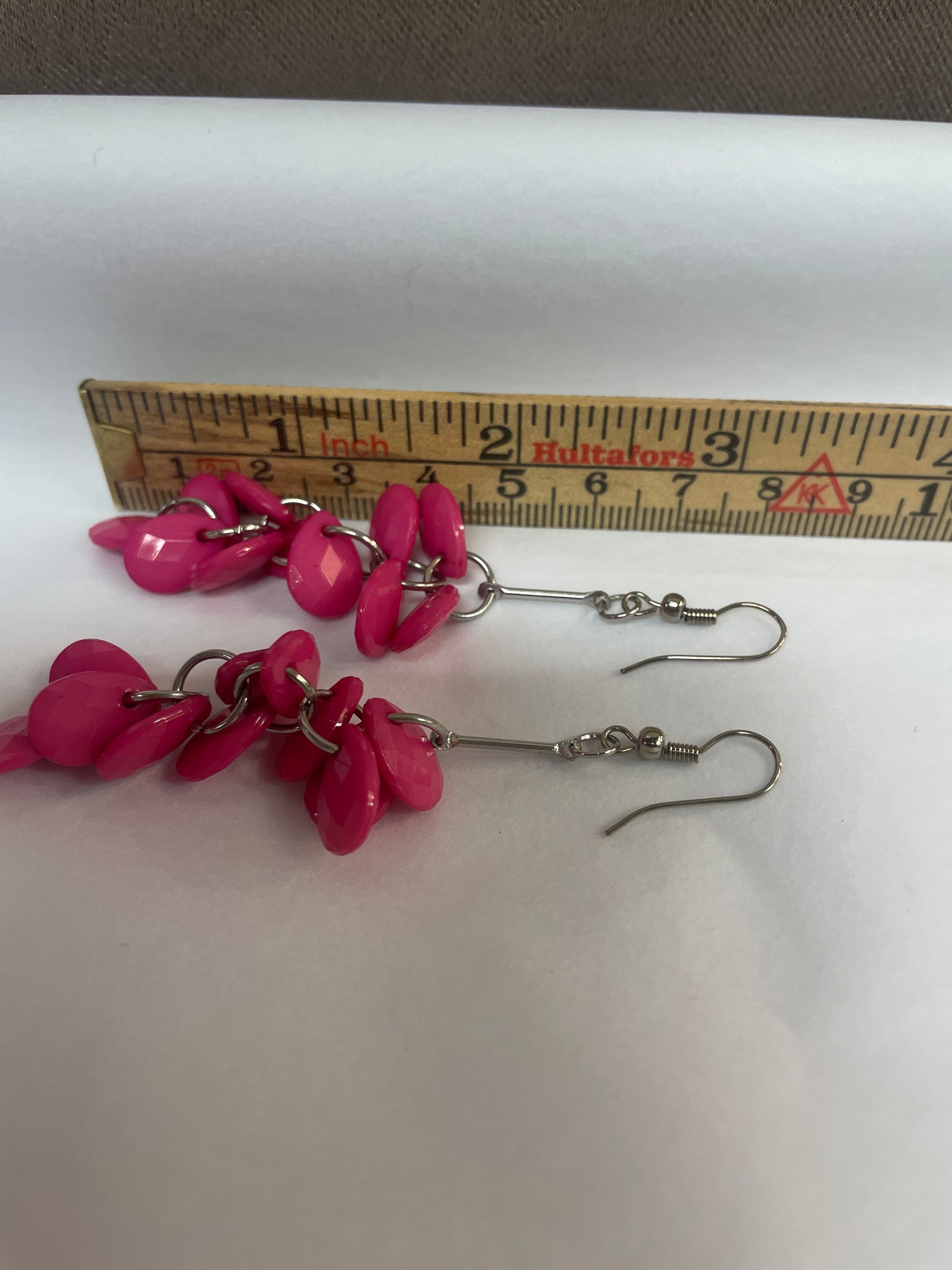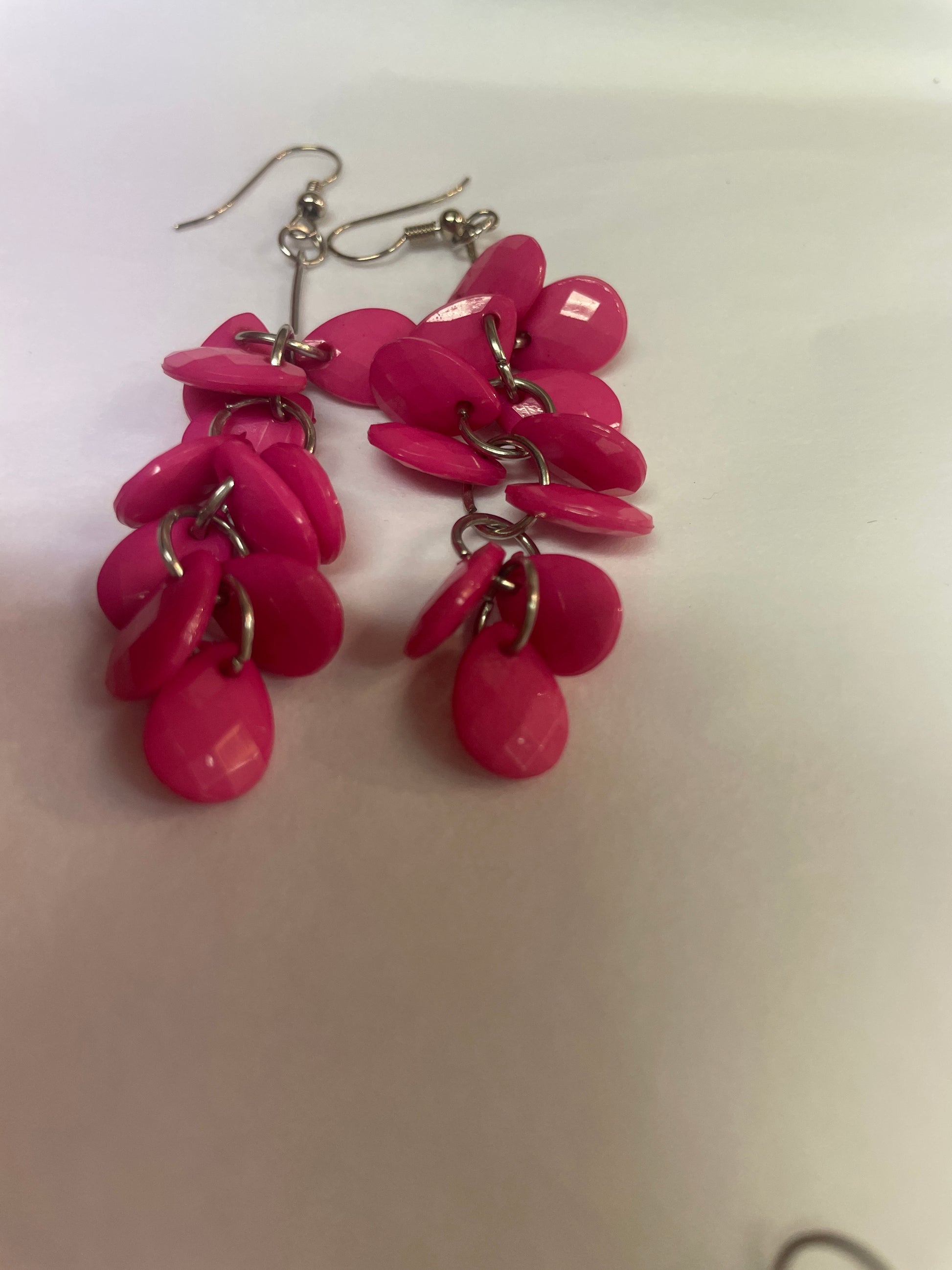 🆕Håndlaget sølvfarget mørkrosa farget øredobber- Tilstand: Nye, ubrukte!