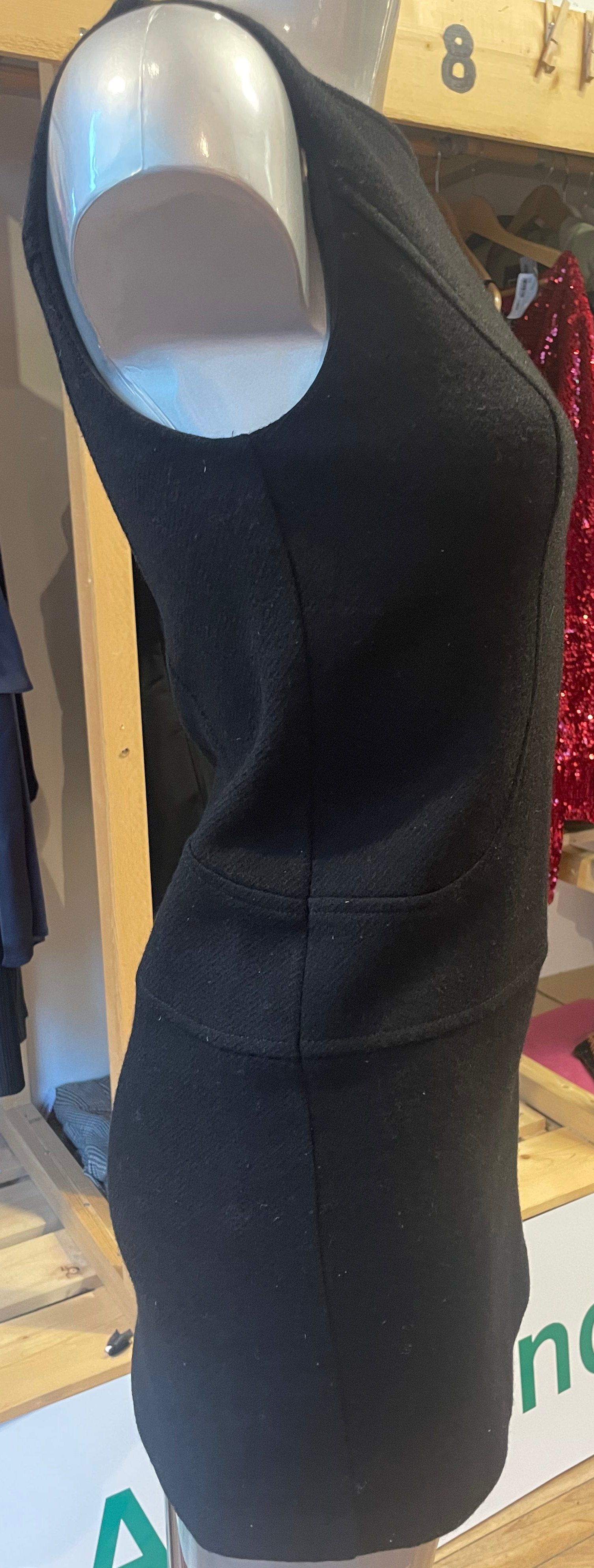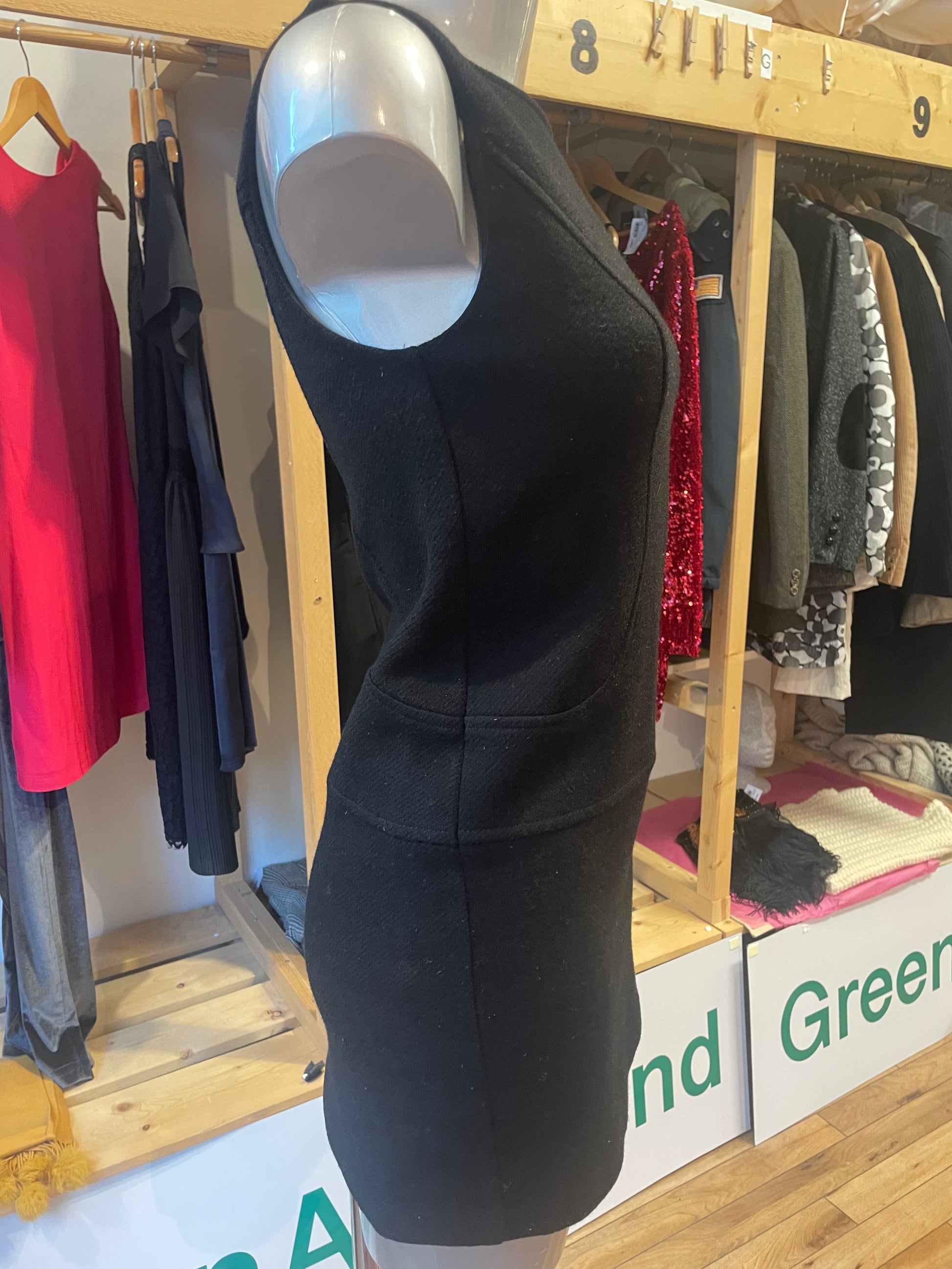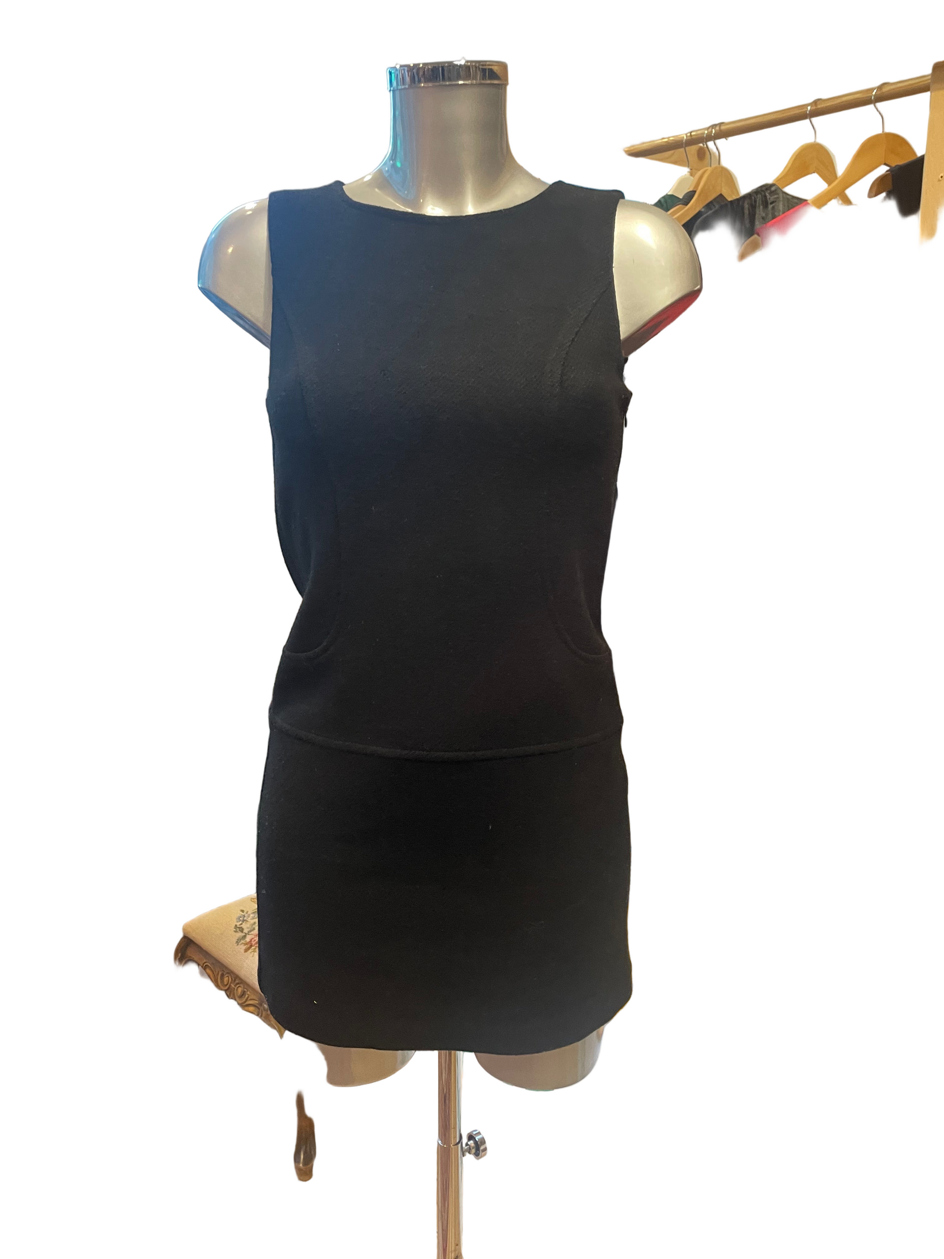Svart/sort kort kjole fra Benetton i 100% ull. Str S