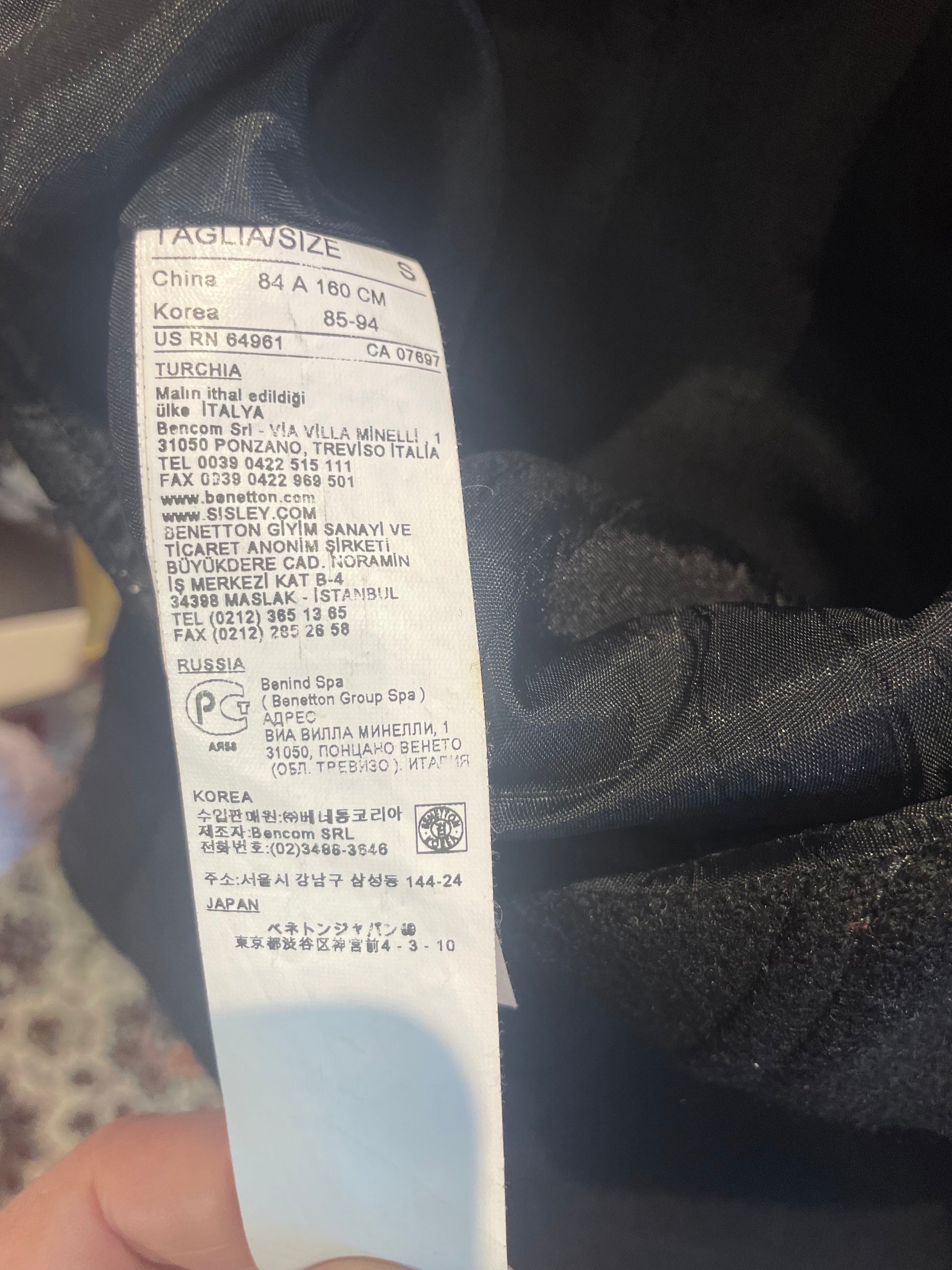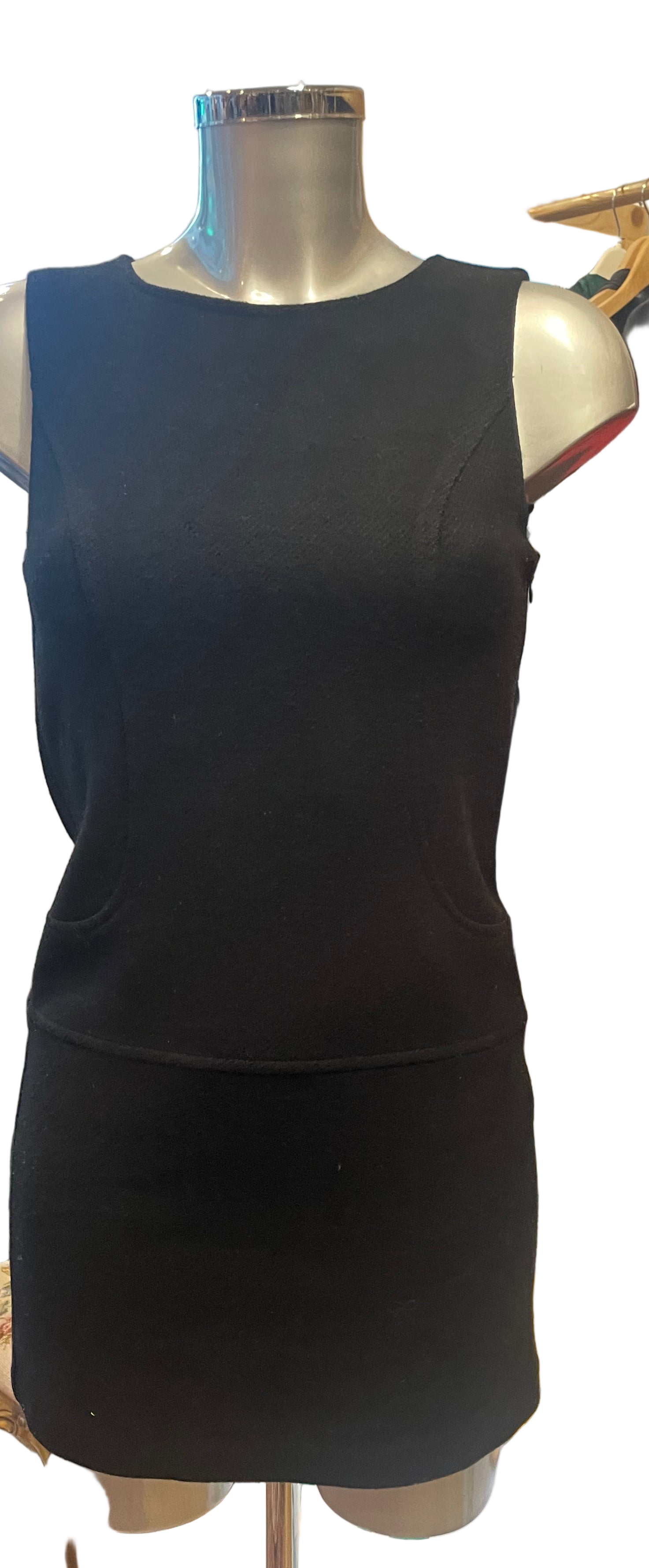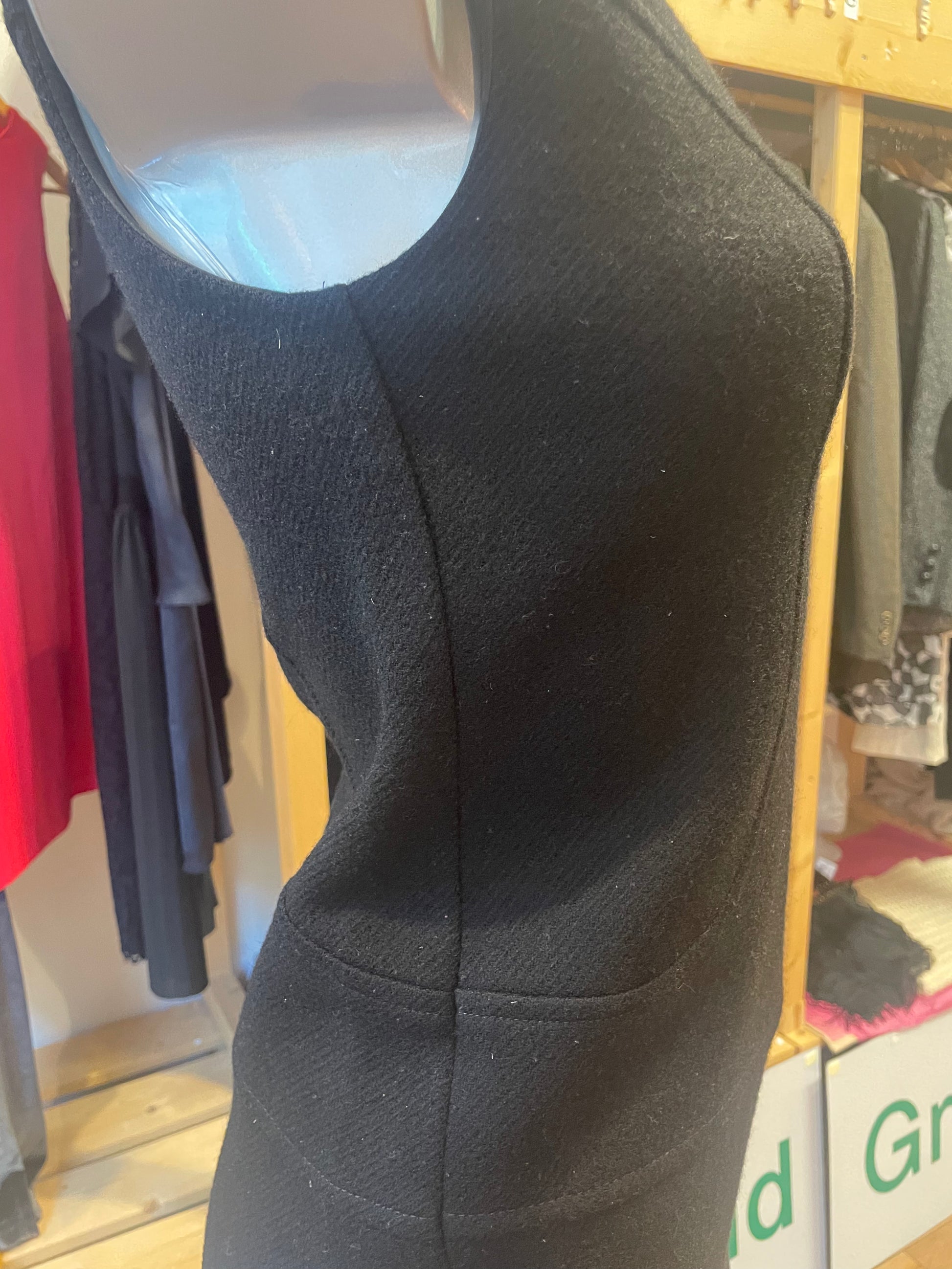 Svart/sort kort kjole fra Benetton i 100% ull. Str S