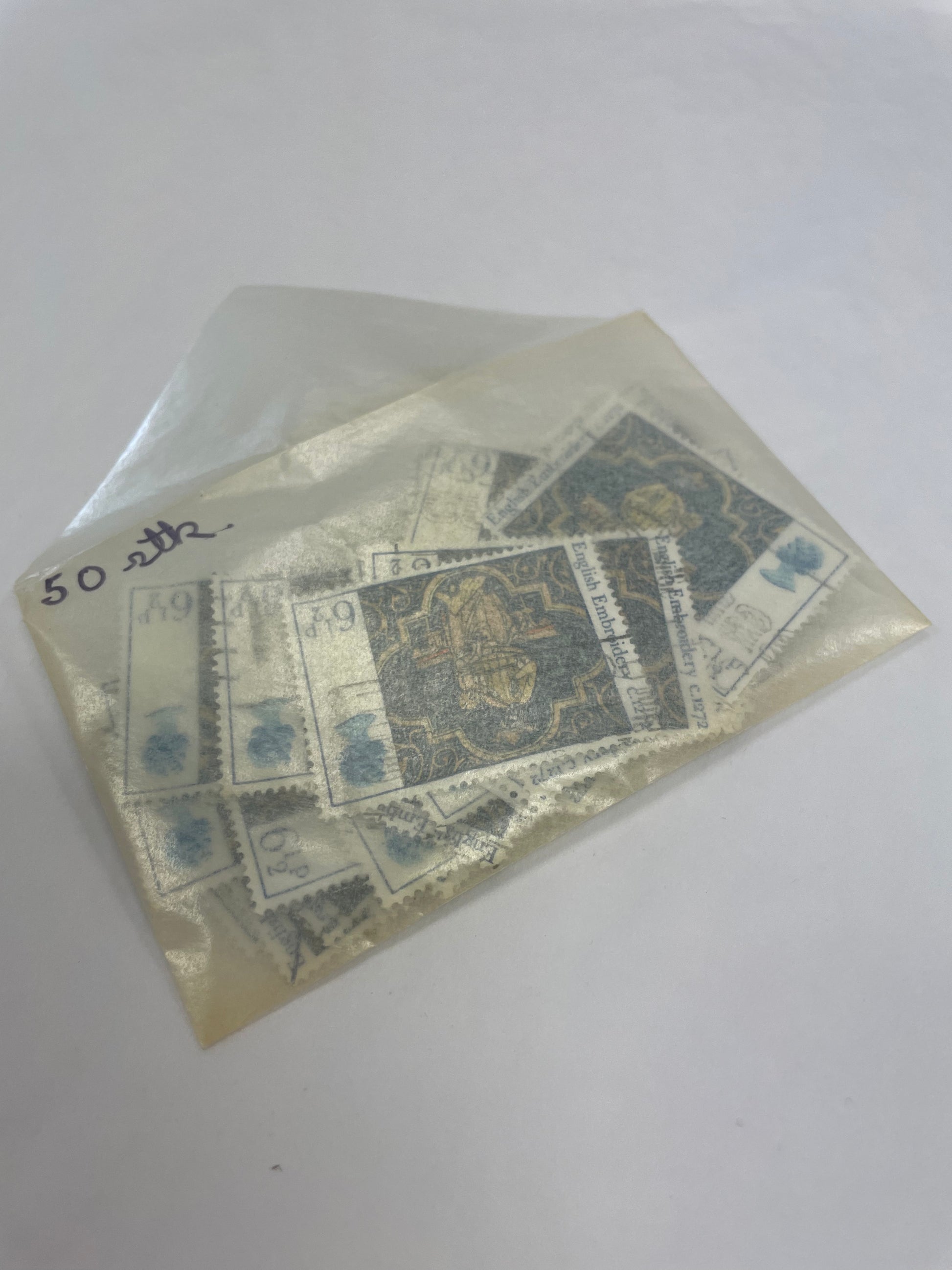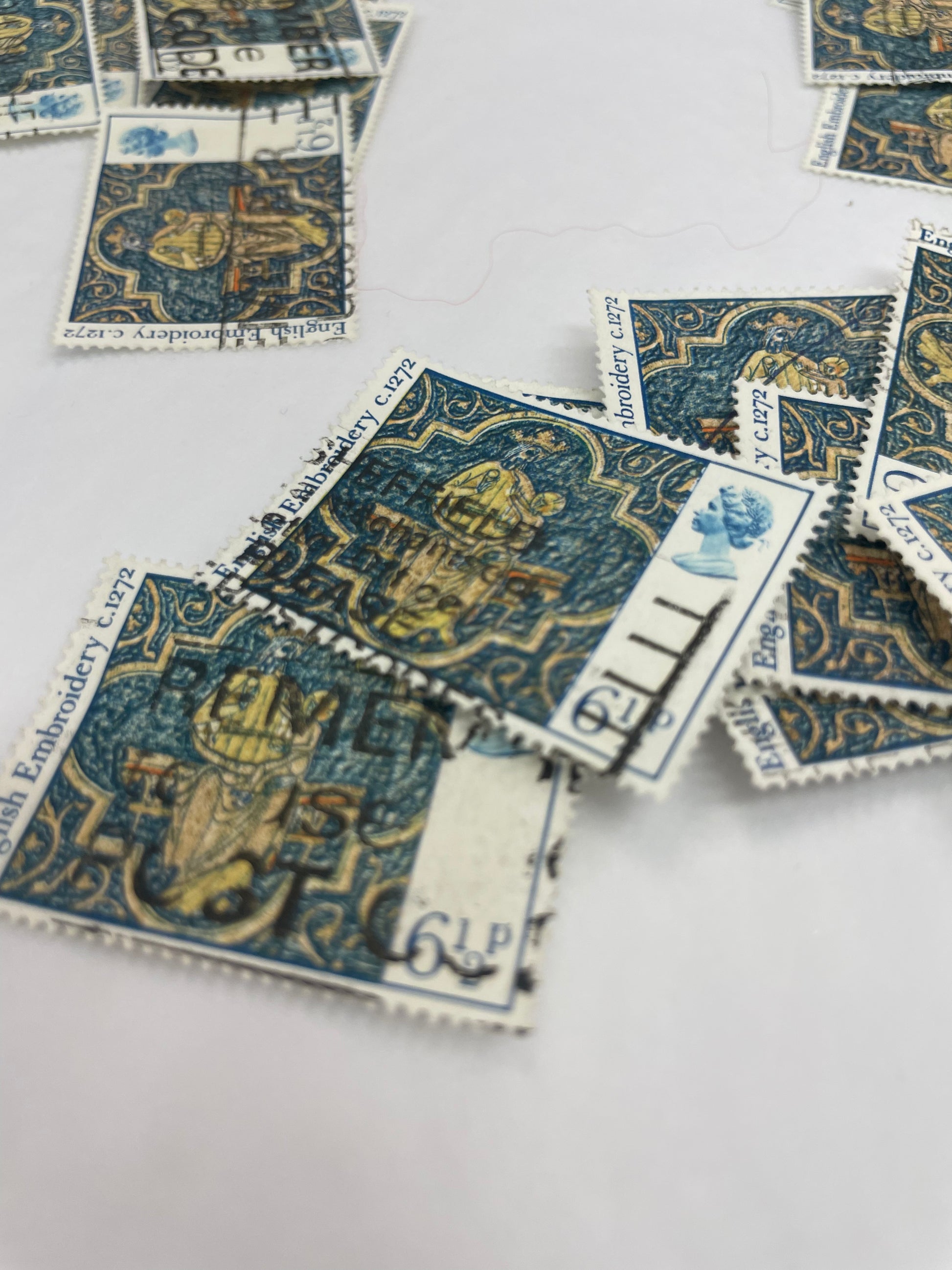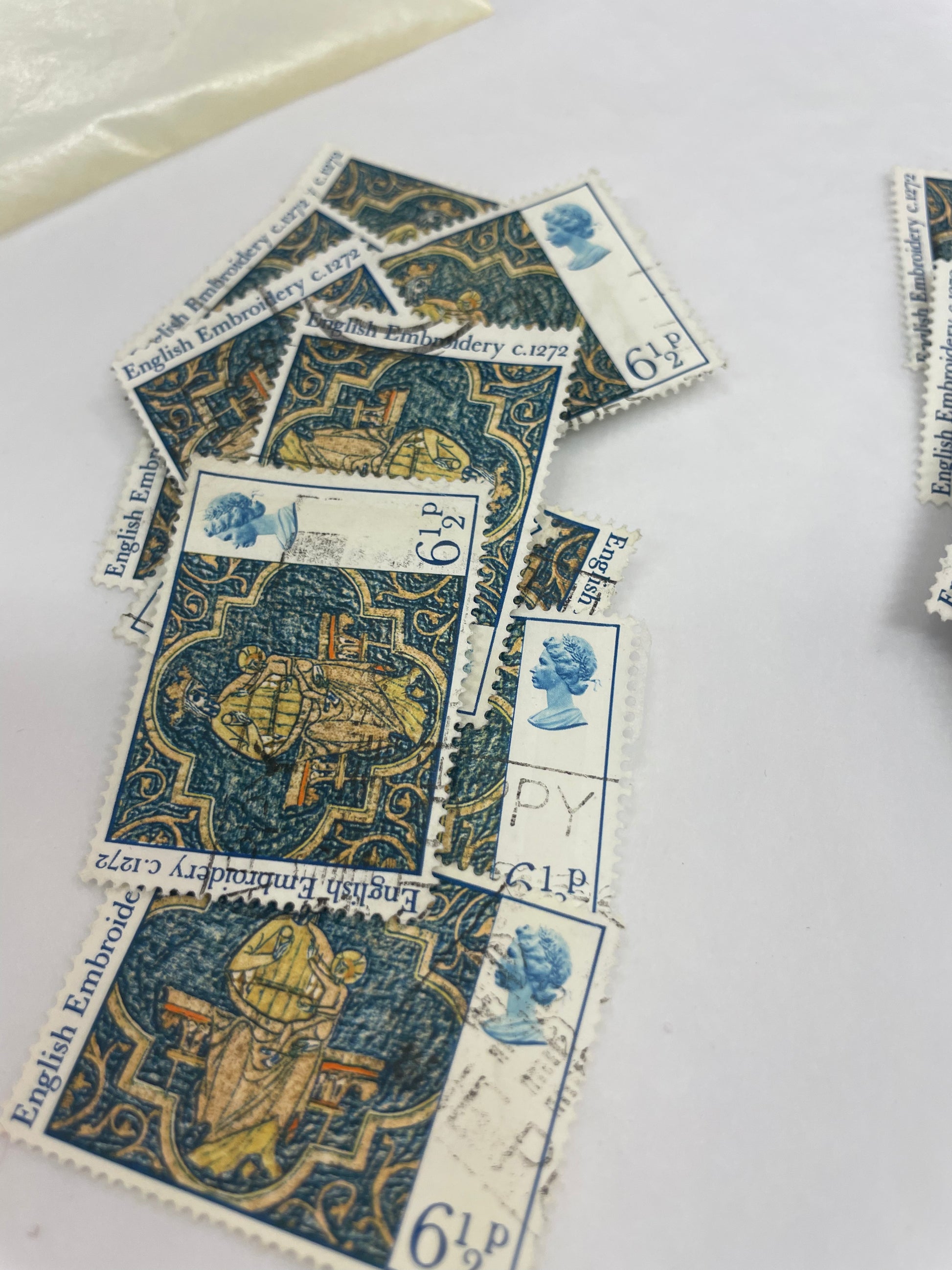 English embroidery stamp frimerke 6,5 P. Noen med stempel, noen uten. Selges enkeltvis 1 stk gi beskjed om det er ett spesielt du ønsker