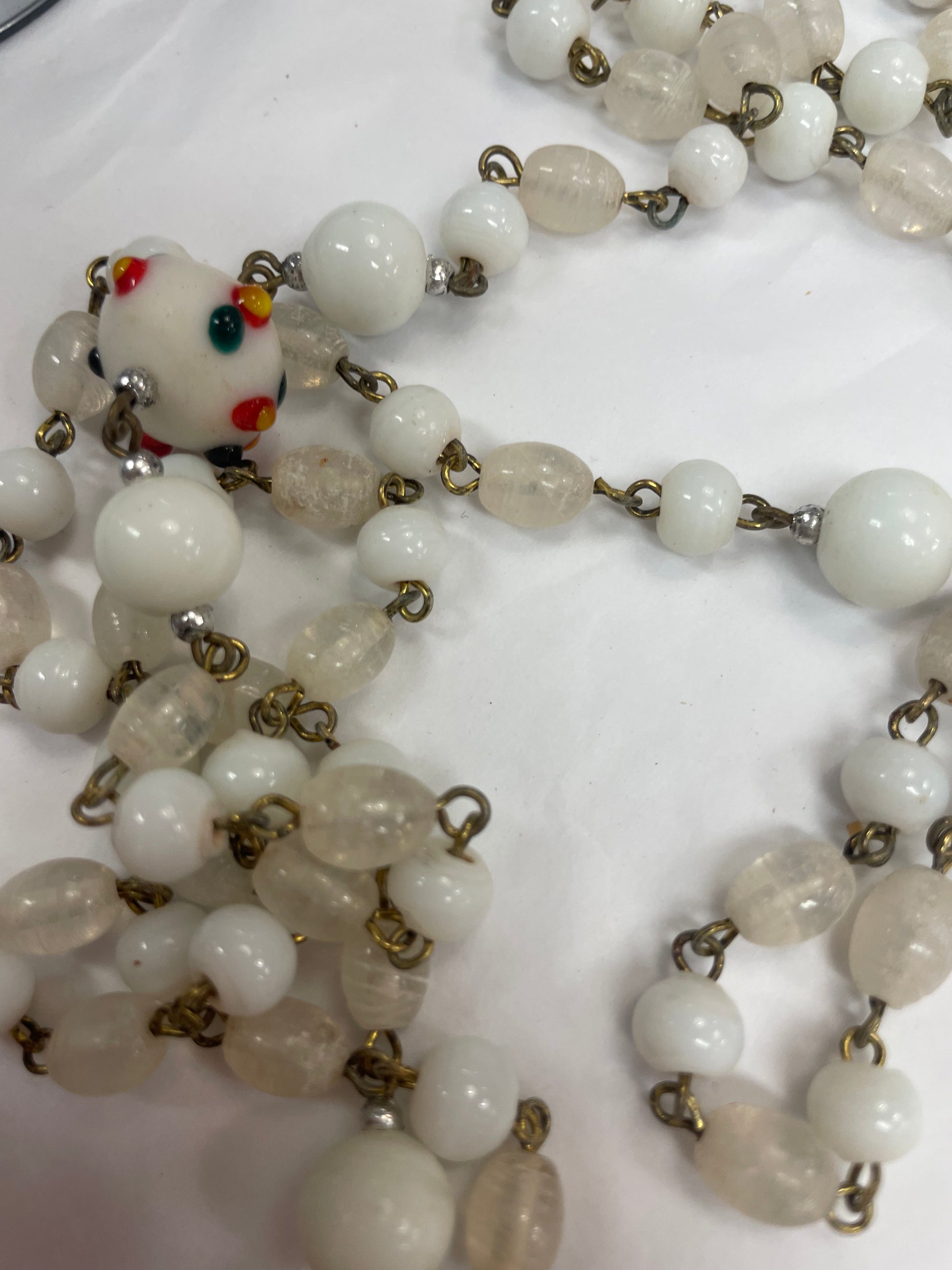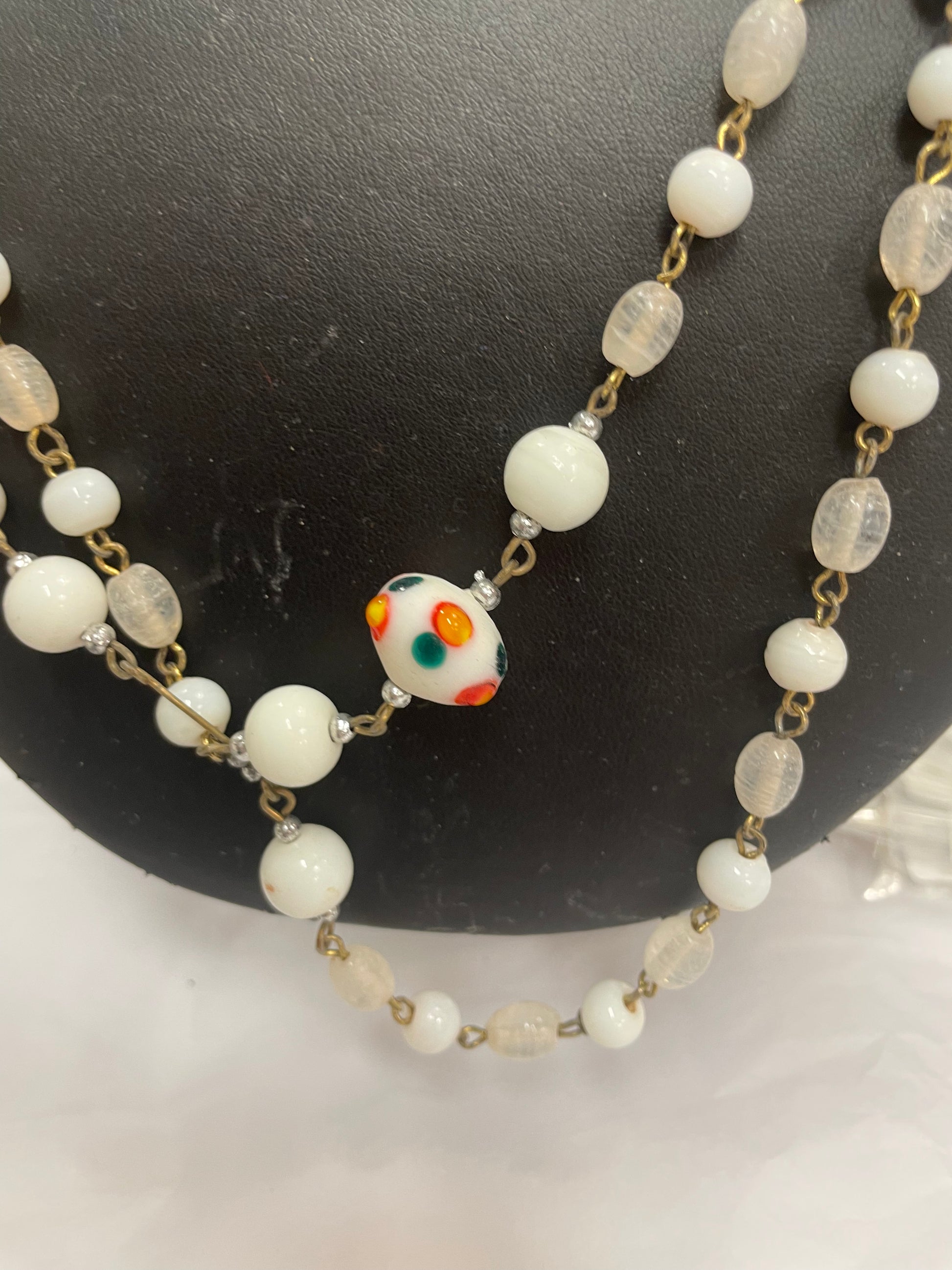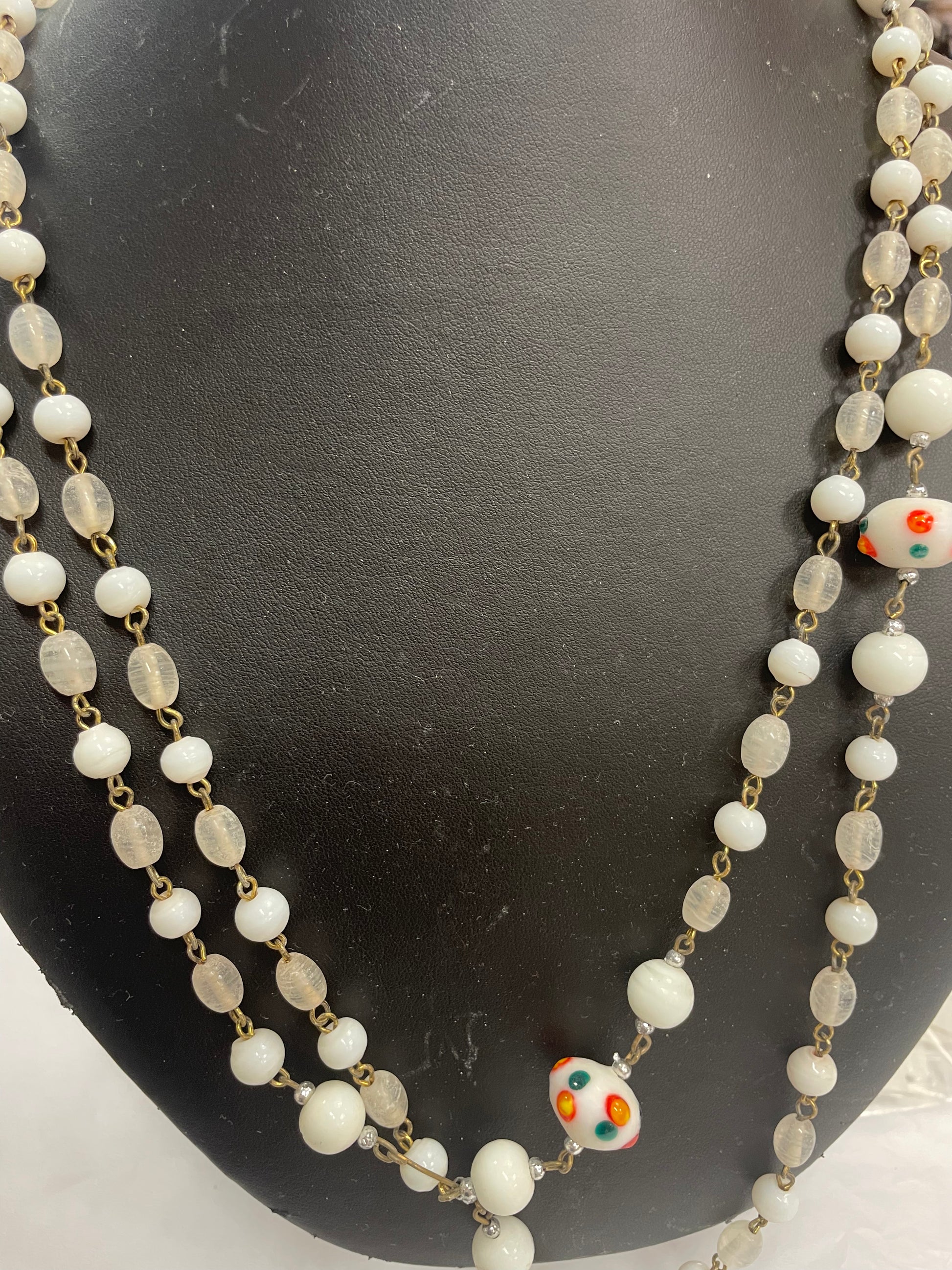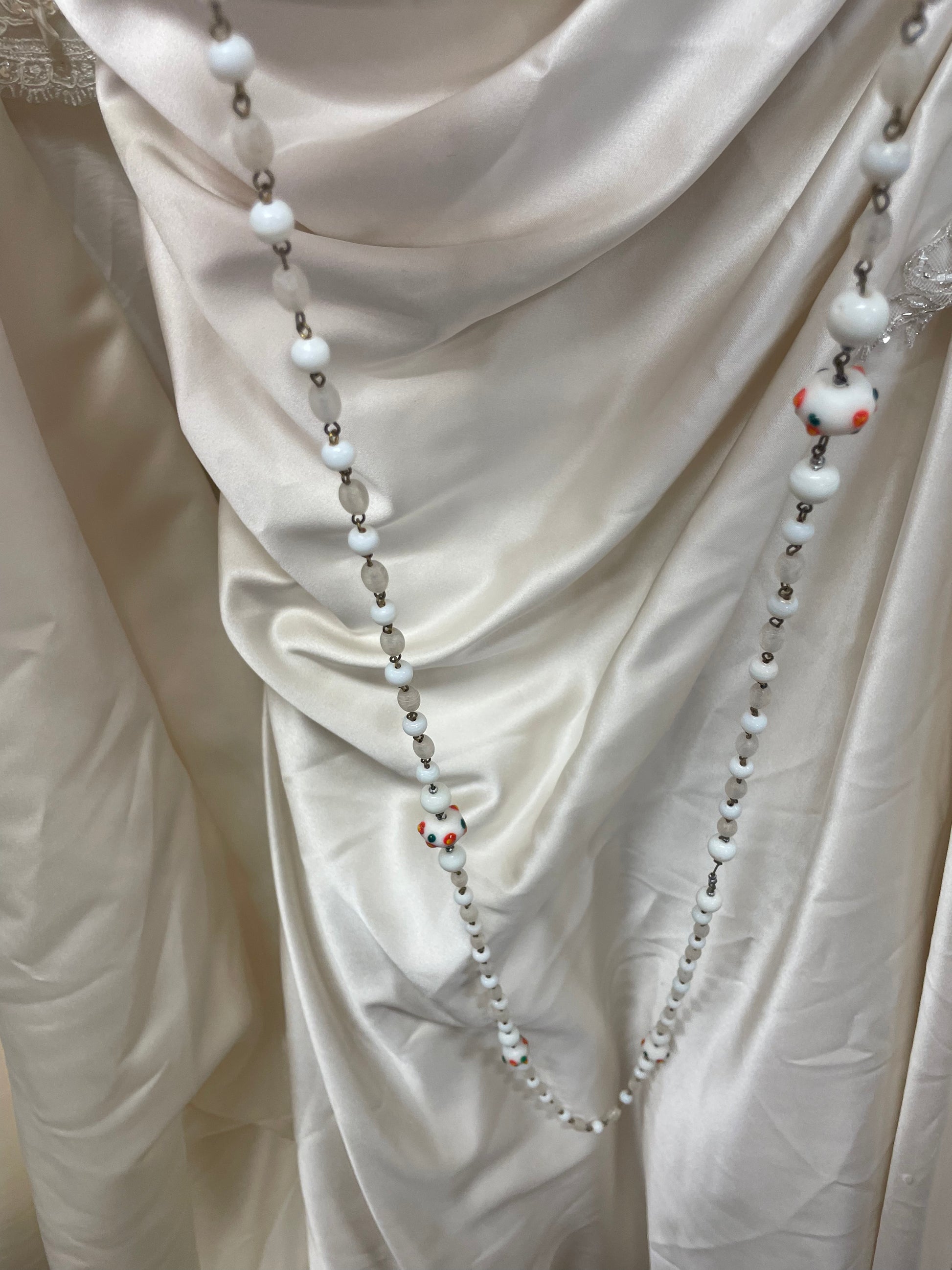 Langt hvitt smykke med røde og grønne prikker. Ubrukt
