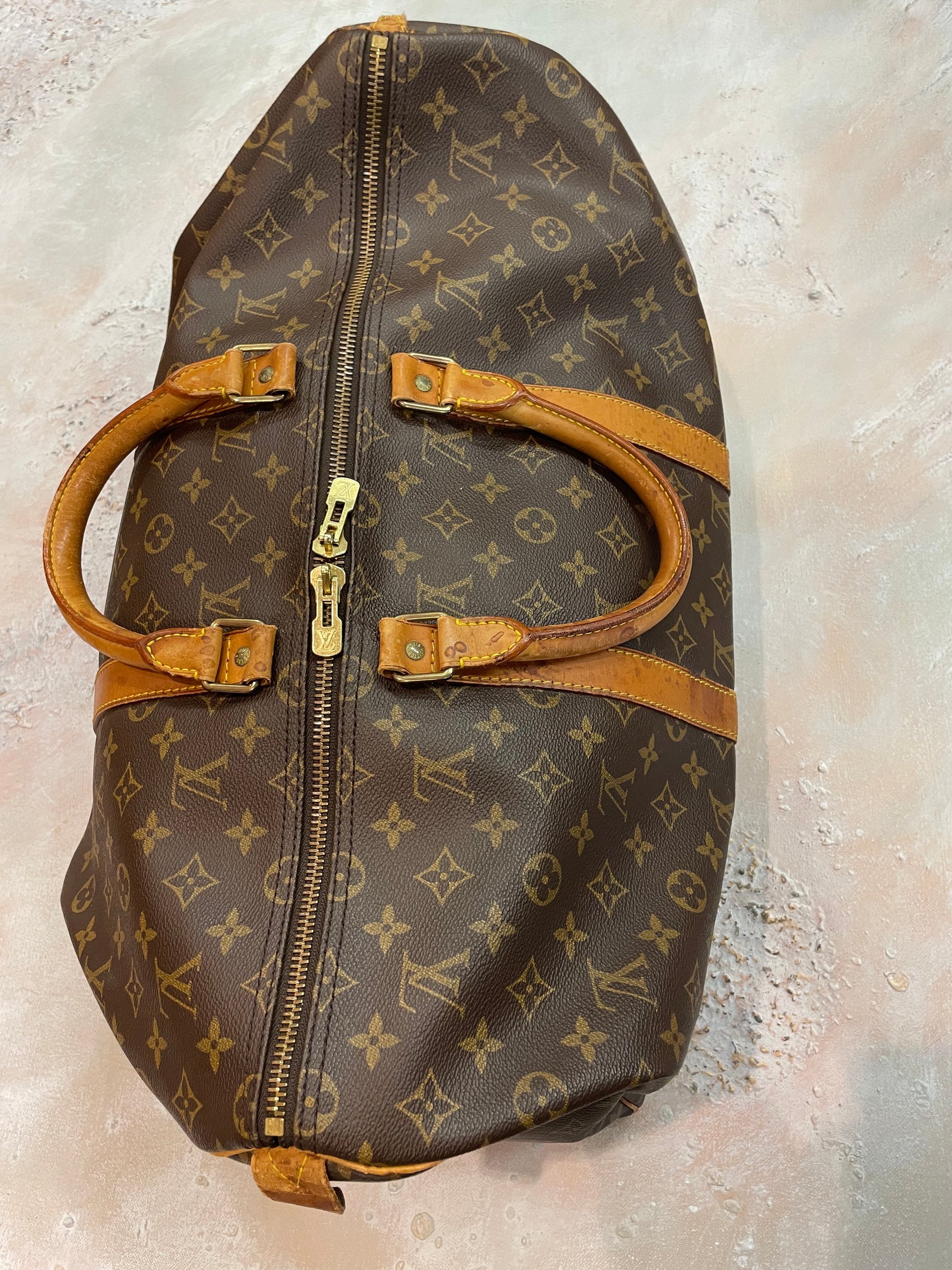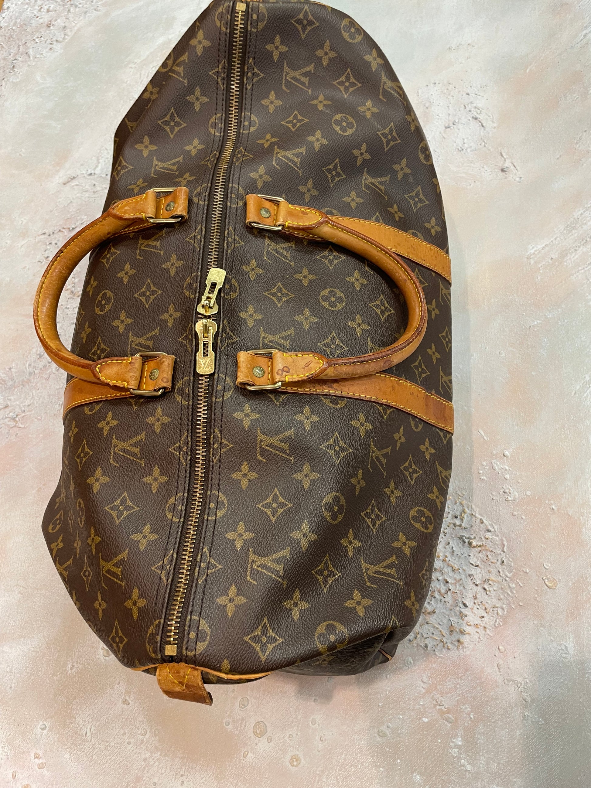Louis Vuitton Keepall 50 bag. Normal vintage stand, litt merker i skinn, se bilder. Føler med Autentitetsbevis fra Green Ålesund og livstidsgaranti på ekte vare!
