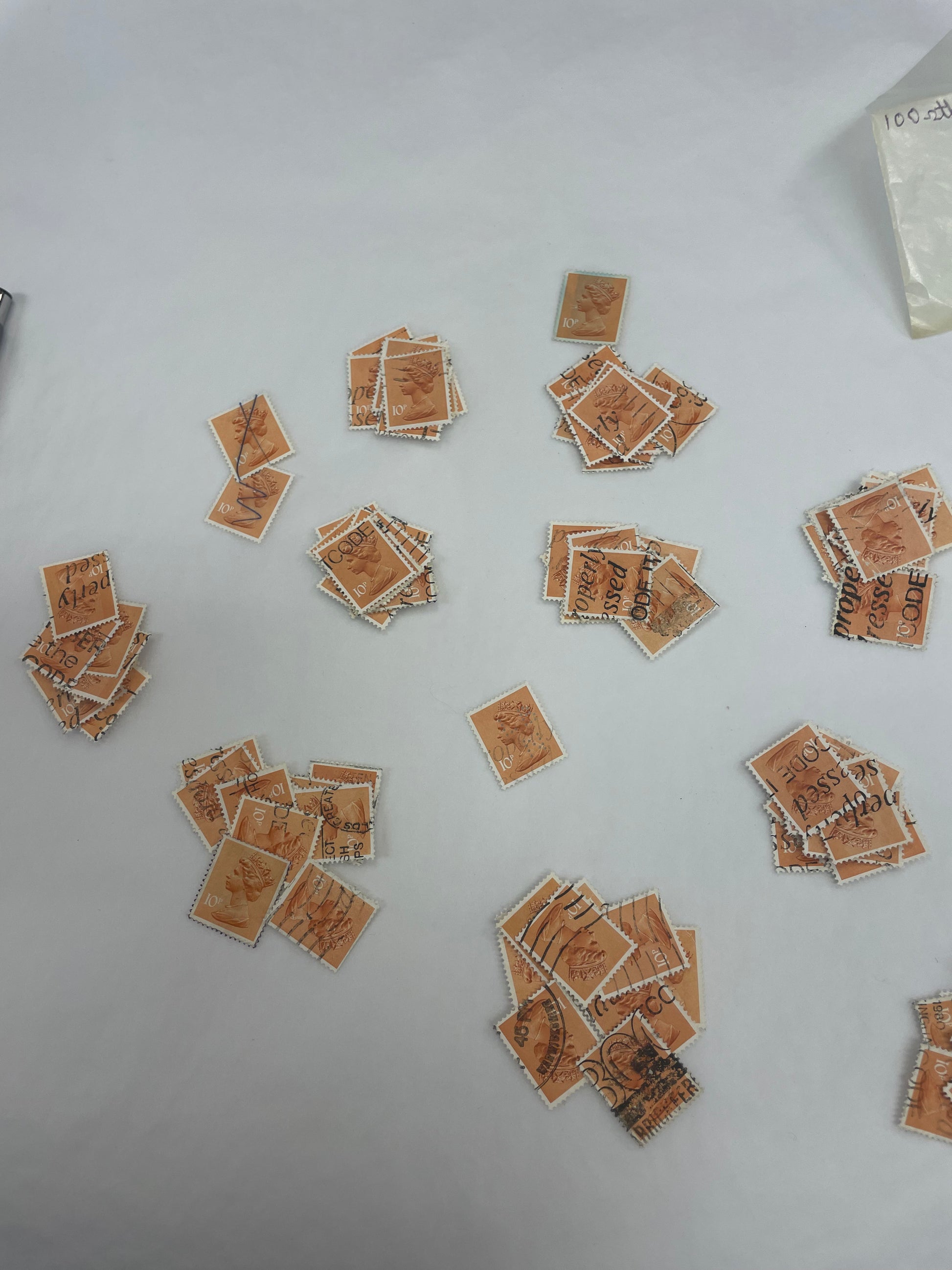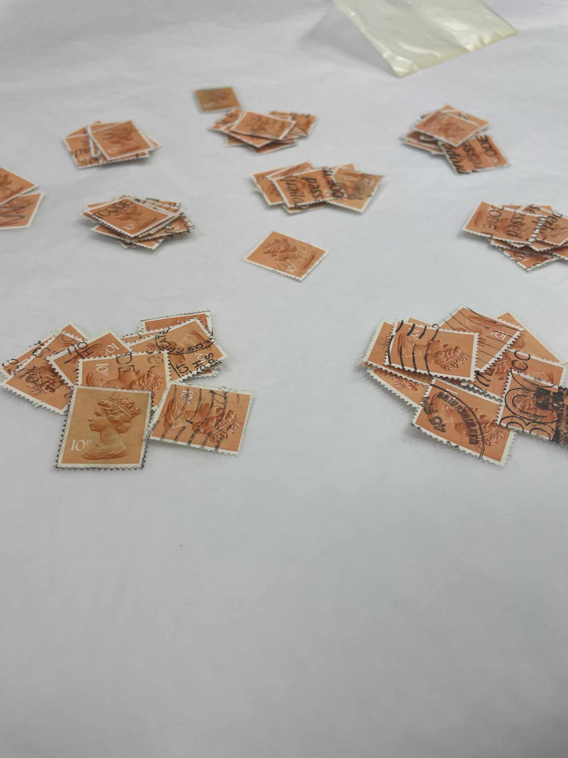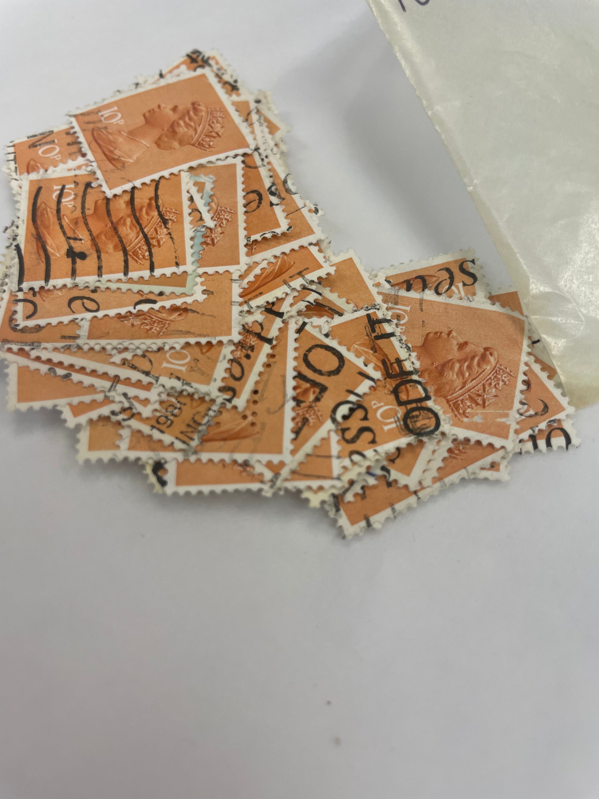 Queen Elizabeth 2 frimerker. Selges enkeltvis. 2 frimerker med pennestrøk(se bilde) 1 frimerke med hull. Mange med stempel mange uten stempel . Orange farge. Gi beskjed om det er ett spesielt du ønsker