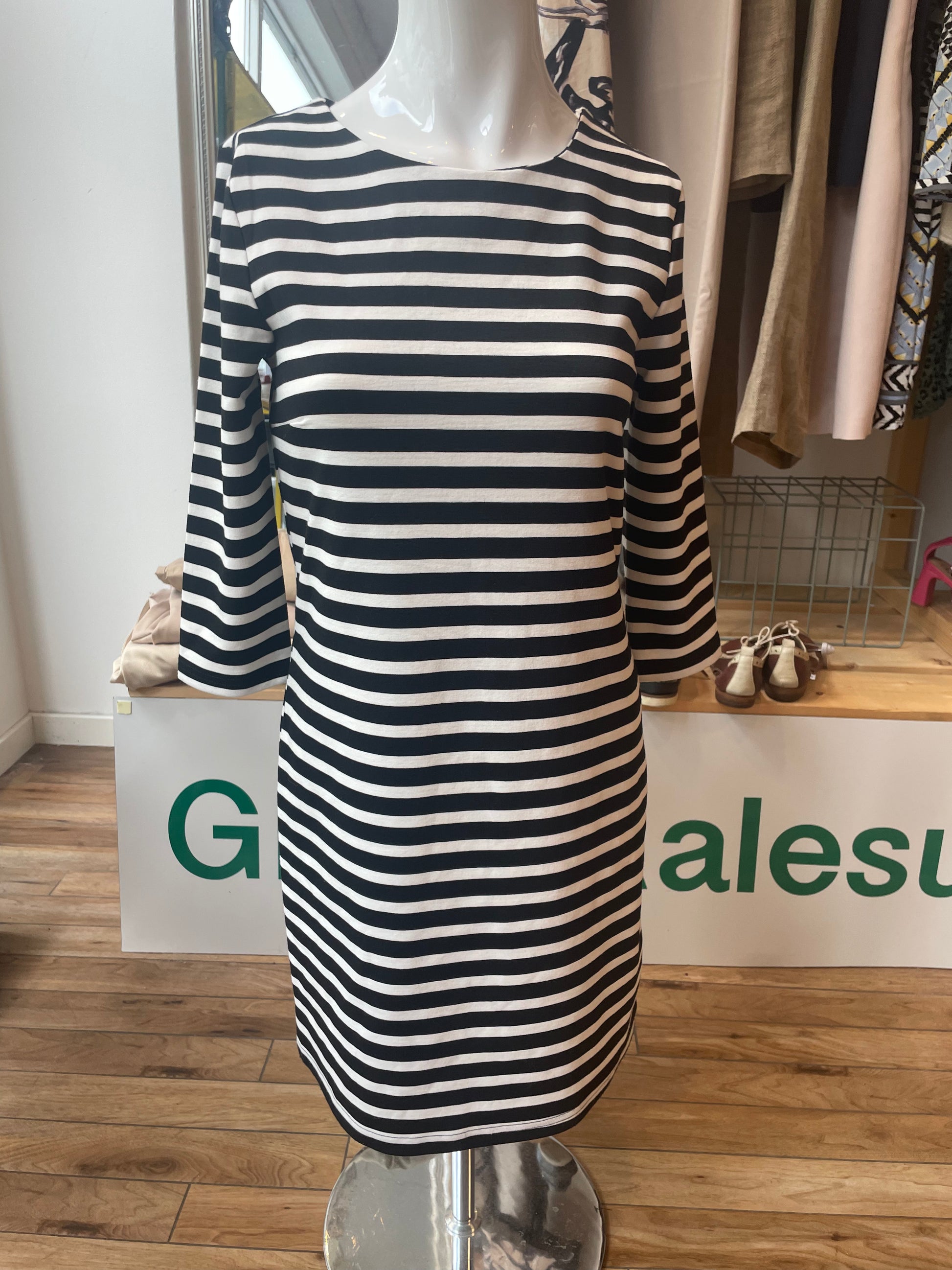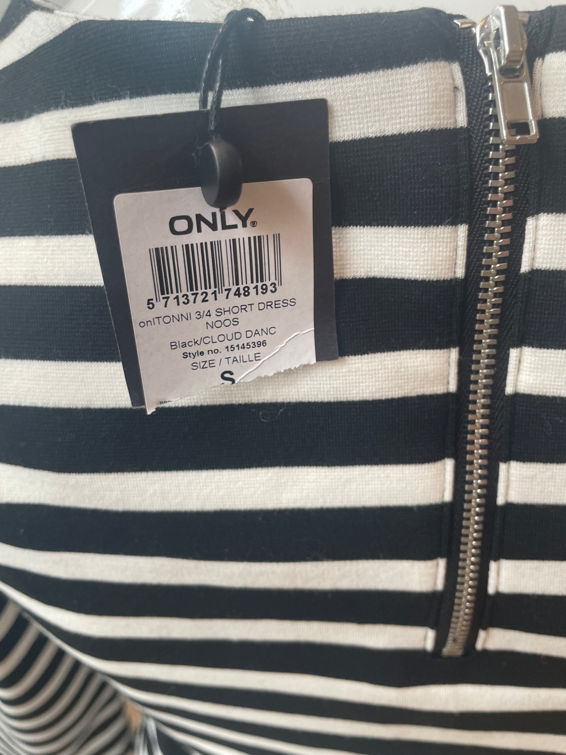 Striper kjole midi str S fra Only med nytag på glidelås i ryggen Second hand