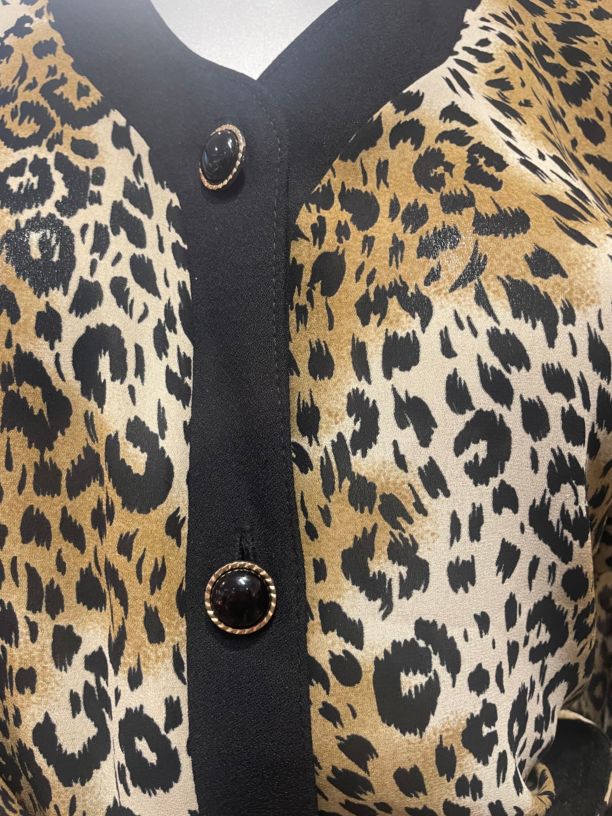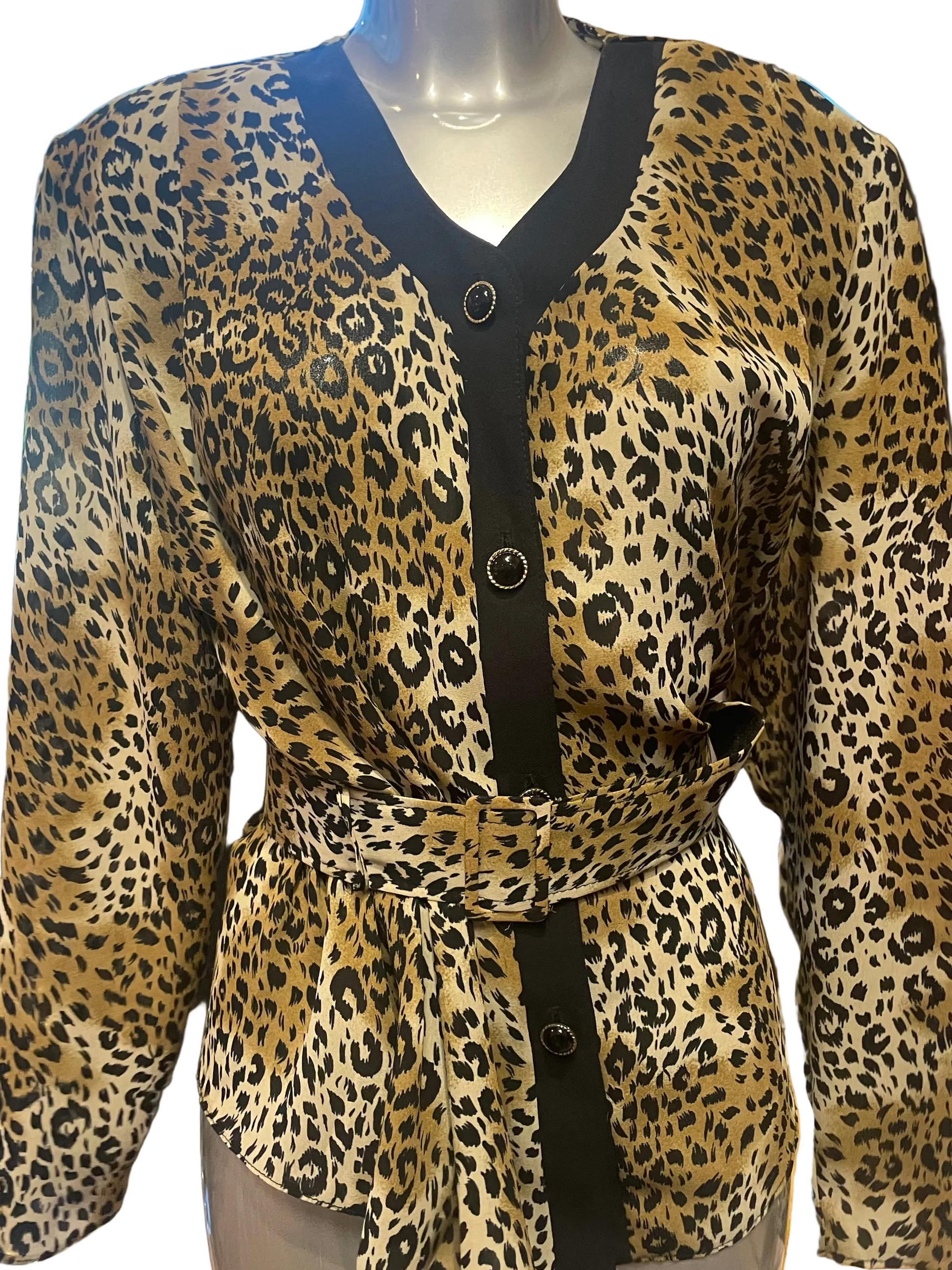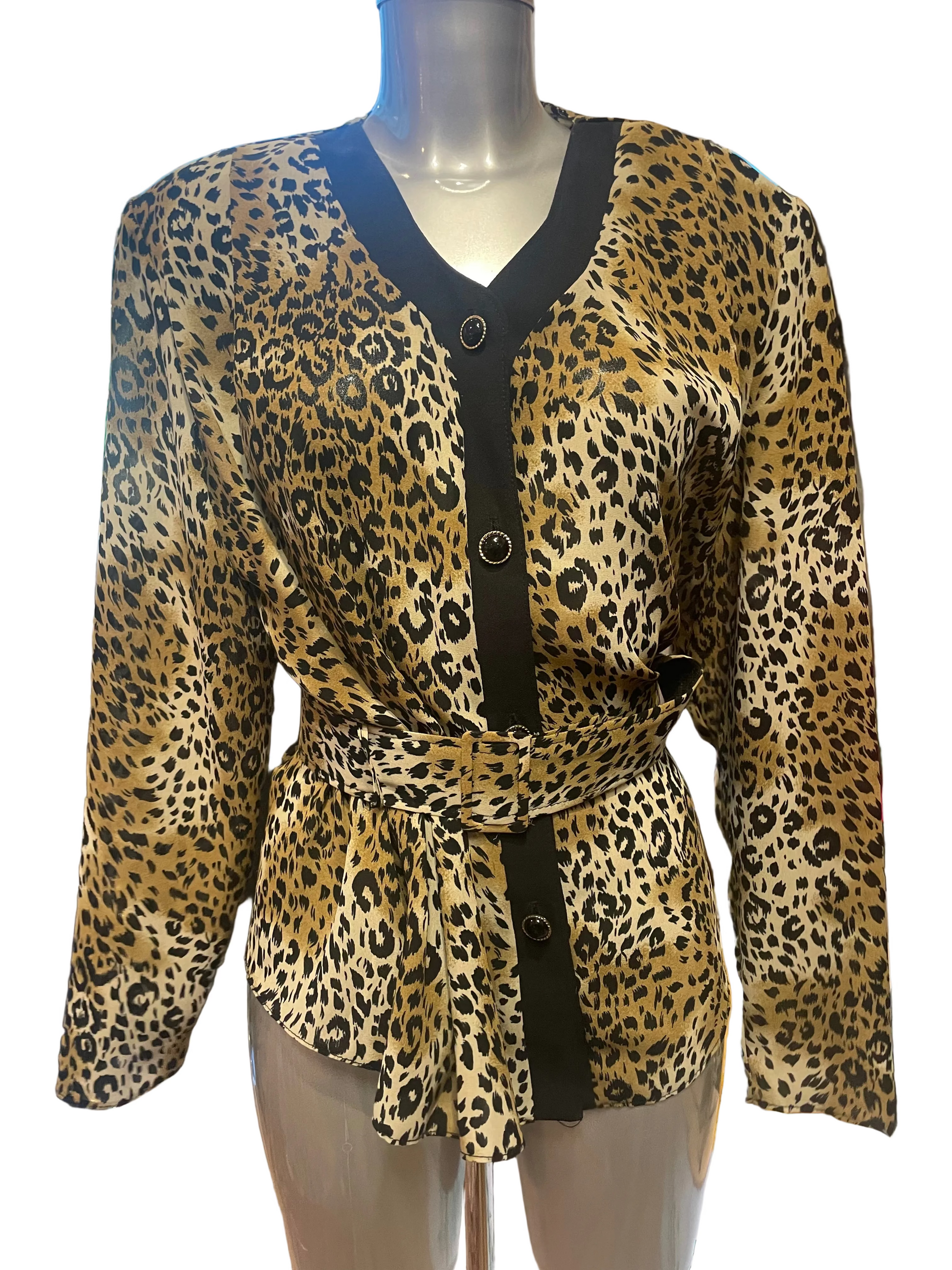 Unik Vintage bluse med knapper og belte. Skulderputer.